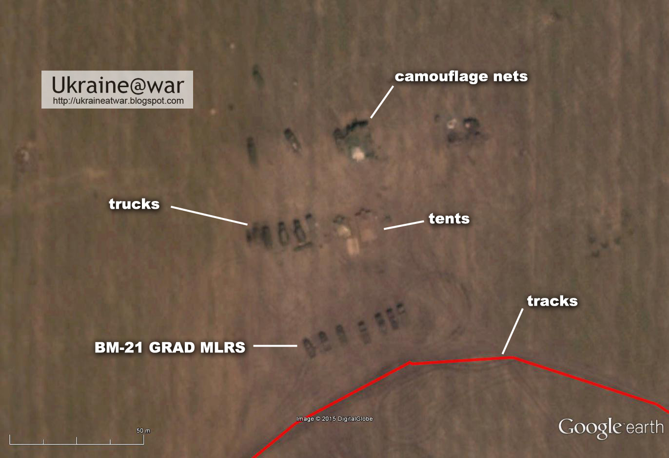 There are trucks and likely GRAD launchers parked there. But also camouflaged positions and tents.